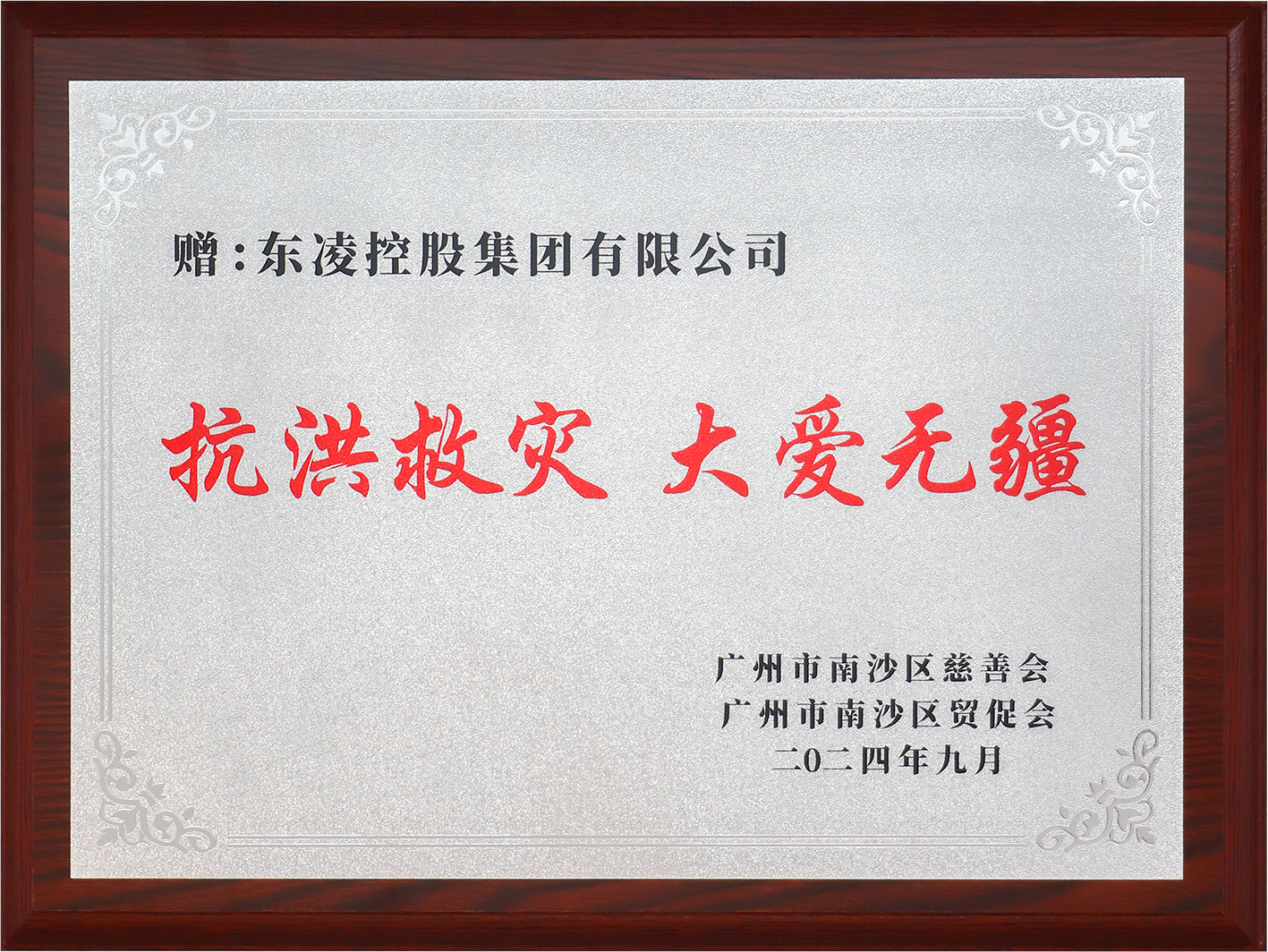 广州市南沙区慈善会、广州市南沙区贸促会 颁发“抗洪救灾 大爱无