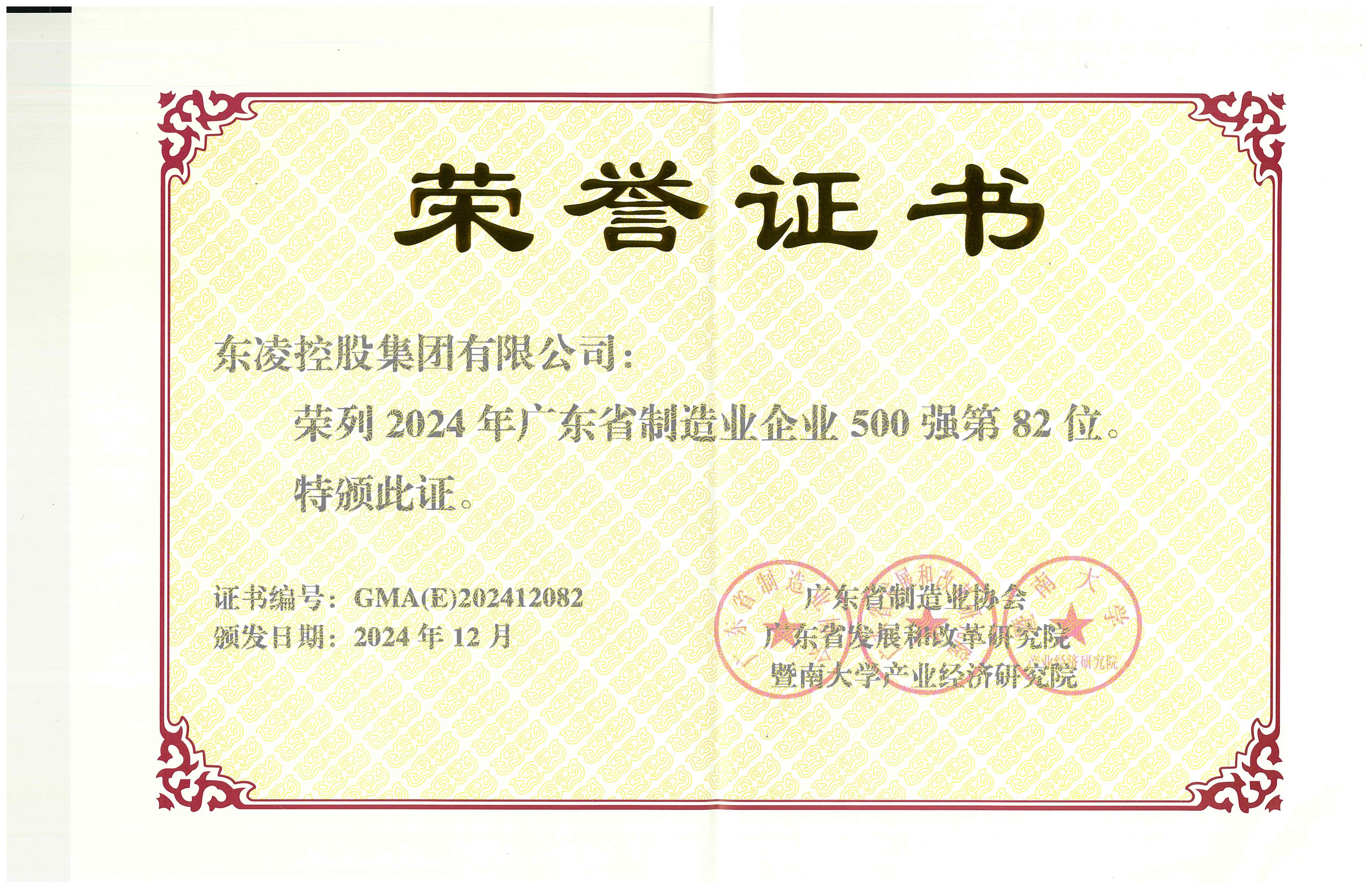 2024广东省制造业企业500强【第82位】