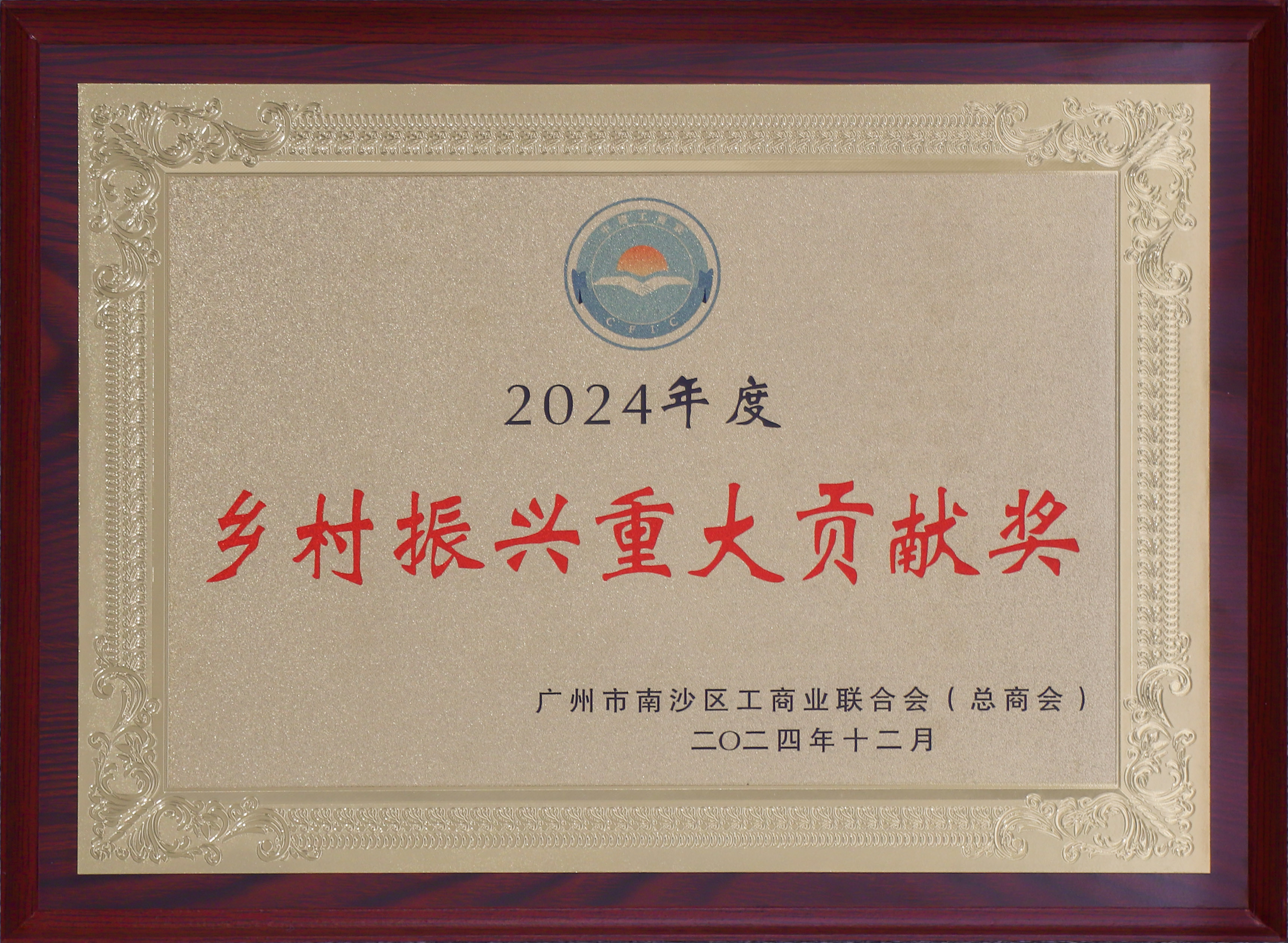 广州市南沙区工商业联合会(总商会) 颁发“2024年度乡村振兴重