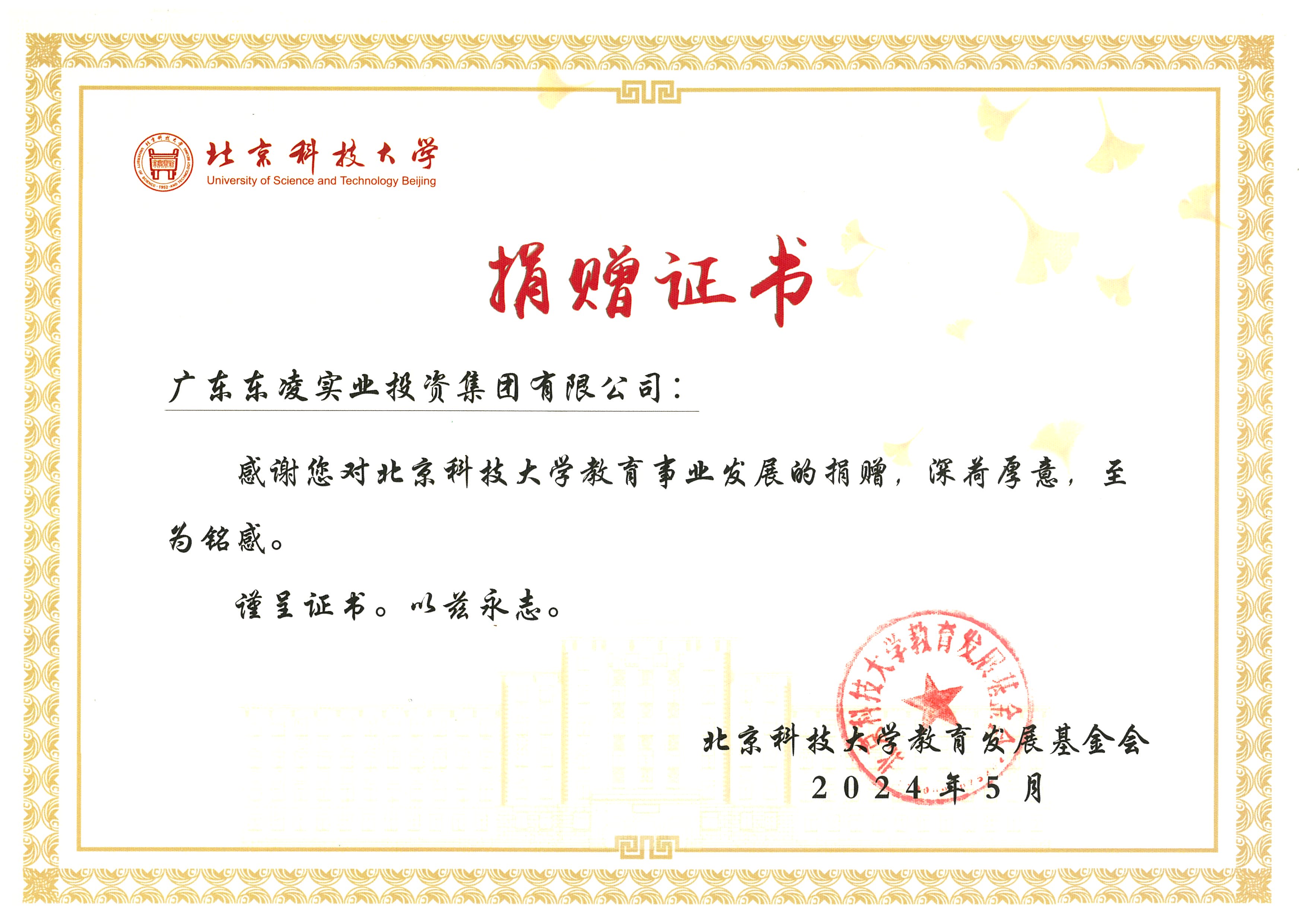 北京科技大学教育发展基金会 颁发的 捐赠证书