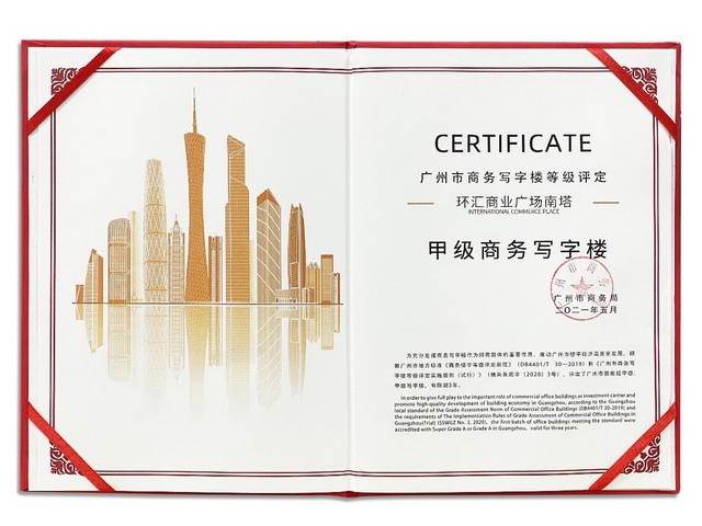 环汇商业广场南塔获评广州市甲级商务写字楼