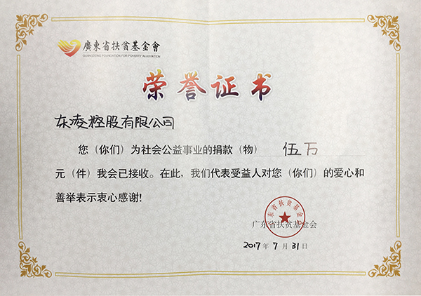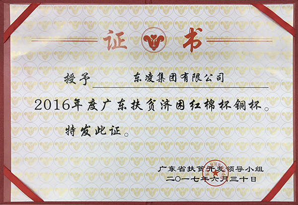 广东扶贫济困红棉杯铜杯证书