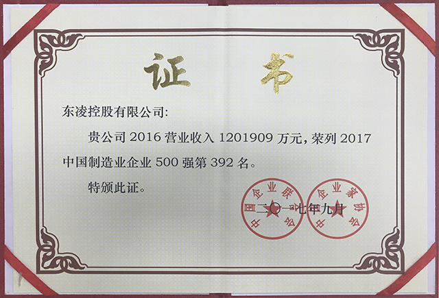 中国制造业企业500强证书