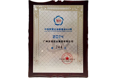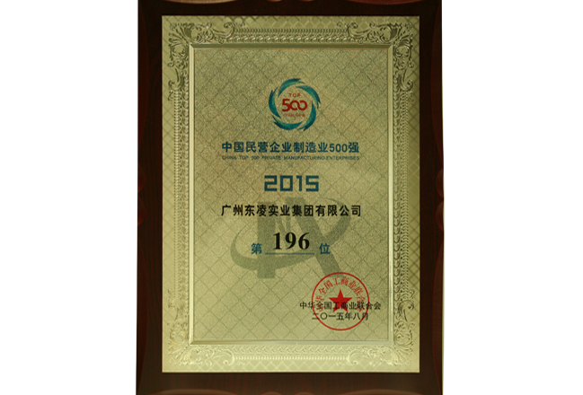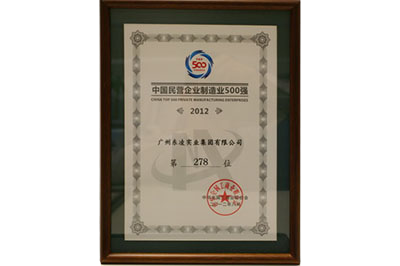 广州东凌实业集团有限公司荣获国民营企业制造业500强--2012年