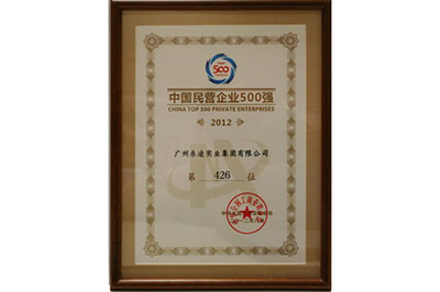 广州东凌实业集团有限公司荣中国民营企业500强--2012年